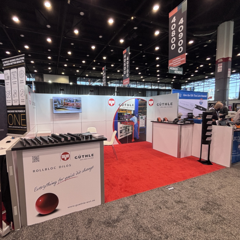 Für die Guethle Pressespannen GmbH durften wir einen 10×15 ft Reihenstand realisieren, der zeigt, wie viel Wirkung auch auf kleiner Fläche möglich ist.